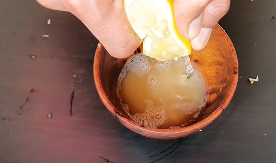 감자즙과 레몬즙이 함께 모아진 그릇에