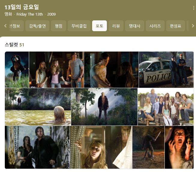 "13일의 금요일" 시리즈 (Friday the 13th Series, 1980-2009): "13일의 금요일" 시리즈는 가장 유명한 작품 중 하나로, 살인마 제이슨 보흐스의 공포와 스릴을 다룹니다. 시리즈 내의 다수의 영화가 공포 팬들에게 추천되며, 특히 첫 번째 영화와 "13일의 금요일 파트 2," "13일의 금요일 파트 3" 등이 인기를 얻고 있습니다.